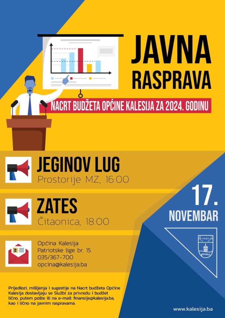 Javna rasprava o Nacrtu budžetu za narednu godinu po planu večeras se održava u Jeginovom Lugu u 16:00 sati u prostorijama MZ i u naselju Zates u prostorijama čitaonice u 18:00 sati.